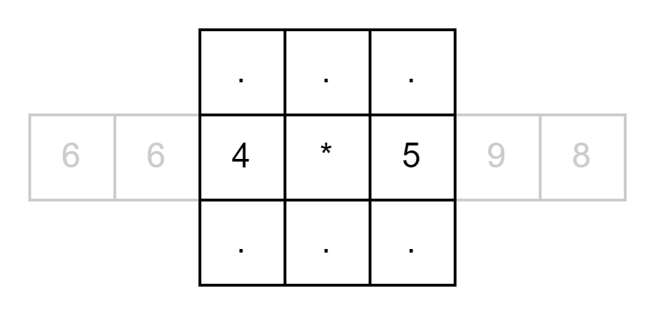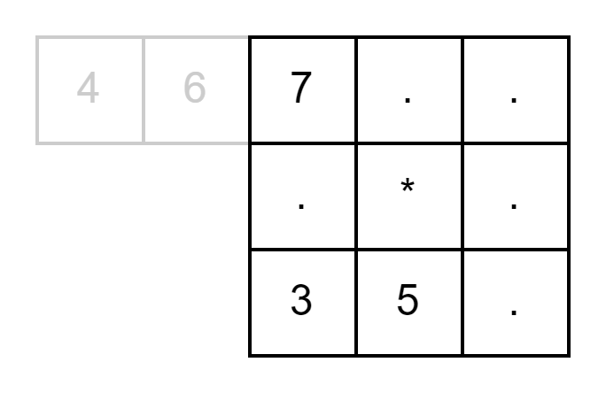 . 은 빈 공간입니다.. 을 제외한 기호에 붙어 있는 숫자는 부품 번호입니다.* 는 467, 35와 붙어 있으므로, 합계에 467와 35을 더합니다.우선 기호의 위치를 파악하고 기호에 붙어있는 숫자들을 파악해 합계에 합산하려고 합니다.