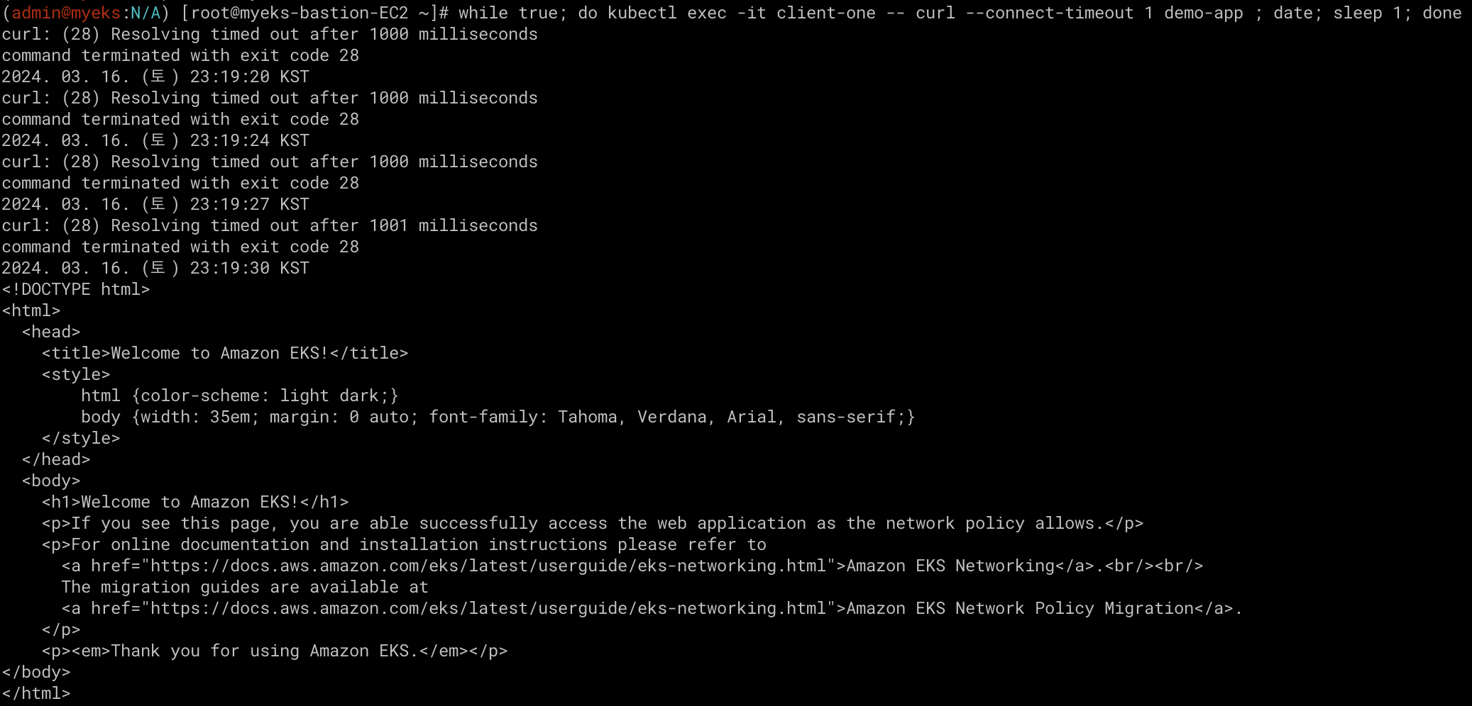 kubectl exec -it client-two -- curl --connect-timeout 1 demo-app
