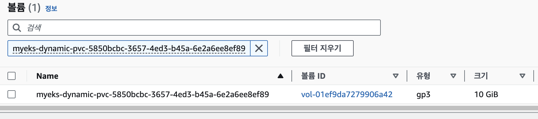 # 워커노드의 EBS 볼륨 확인 : tag(키/값) 필터링 - 링크
