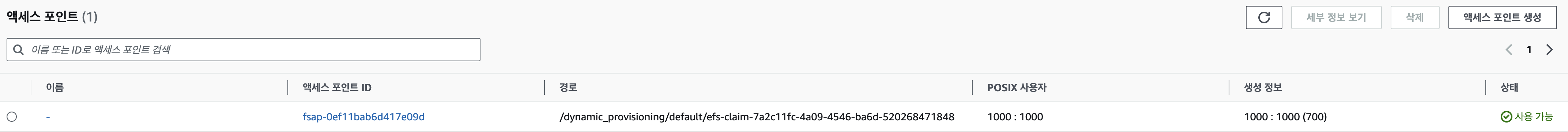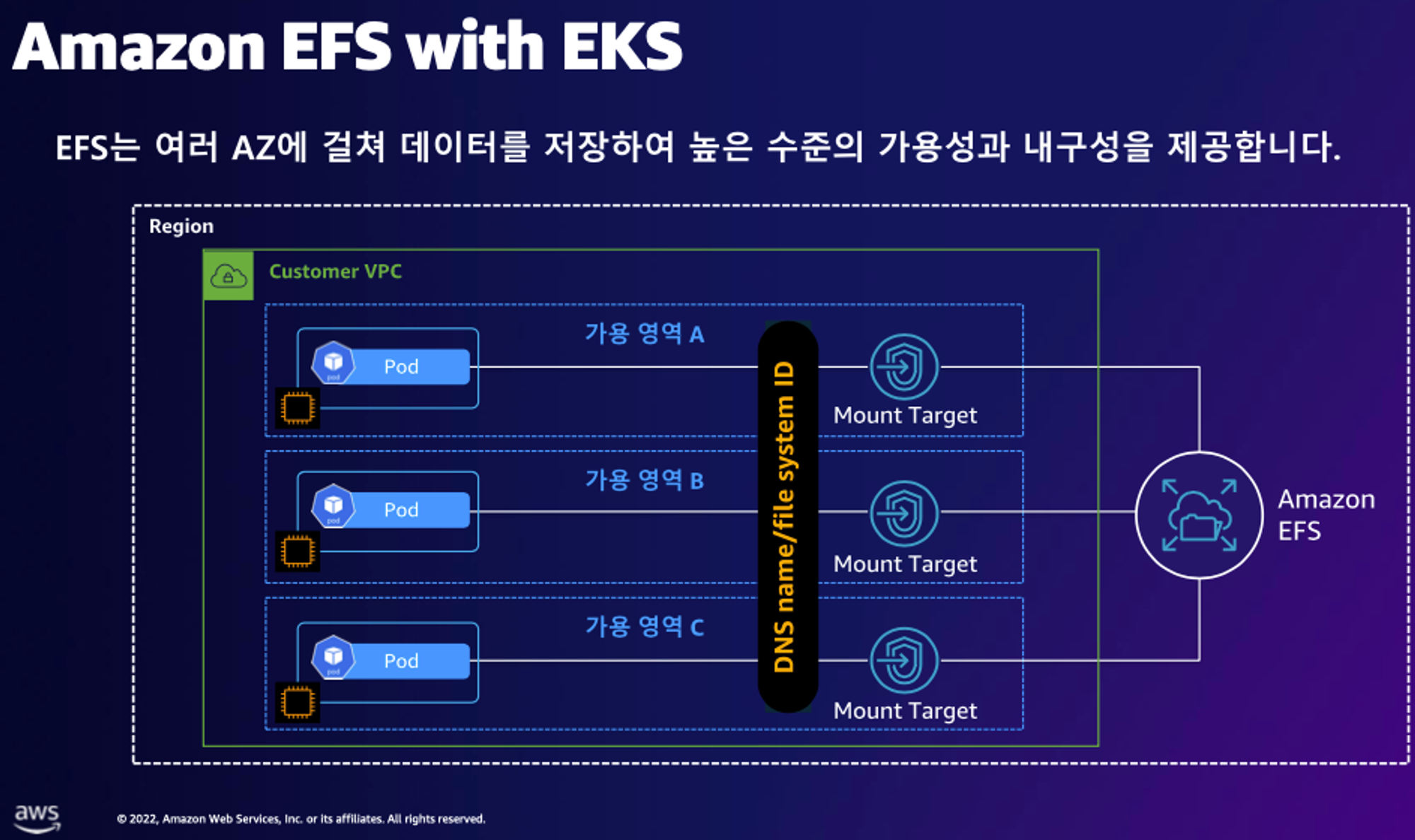 # 파드 생성 및 연동 : 파드 내에 /data 데이터는 EFS를 사용