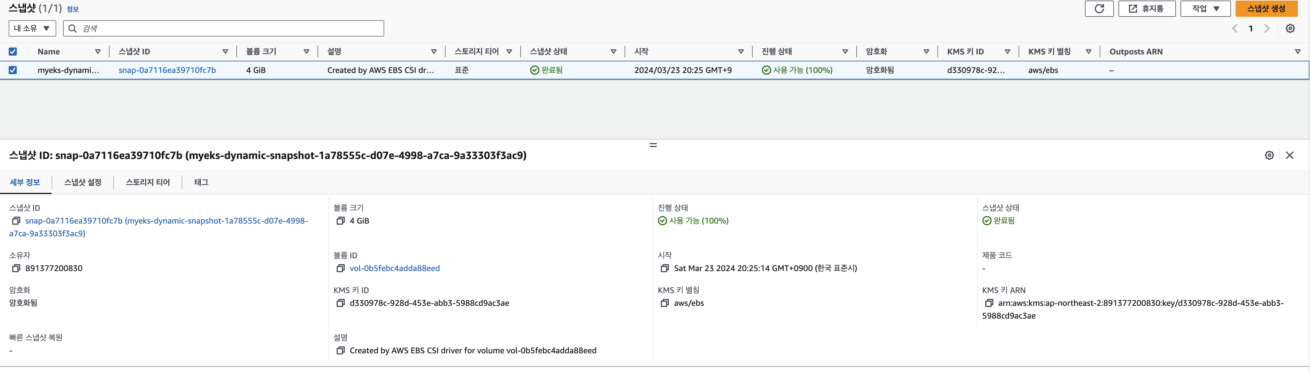 csi-node는 3에서 생성한 EBS Volume을 node에 Mount한다.