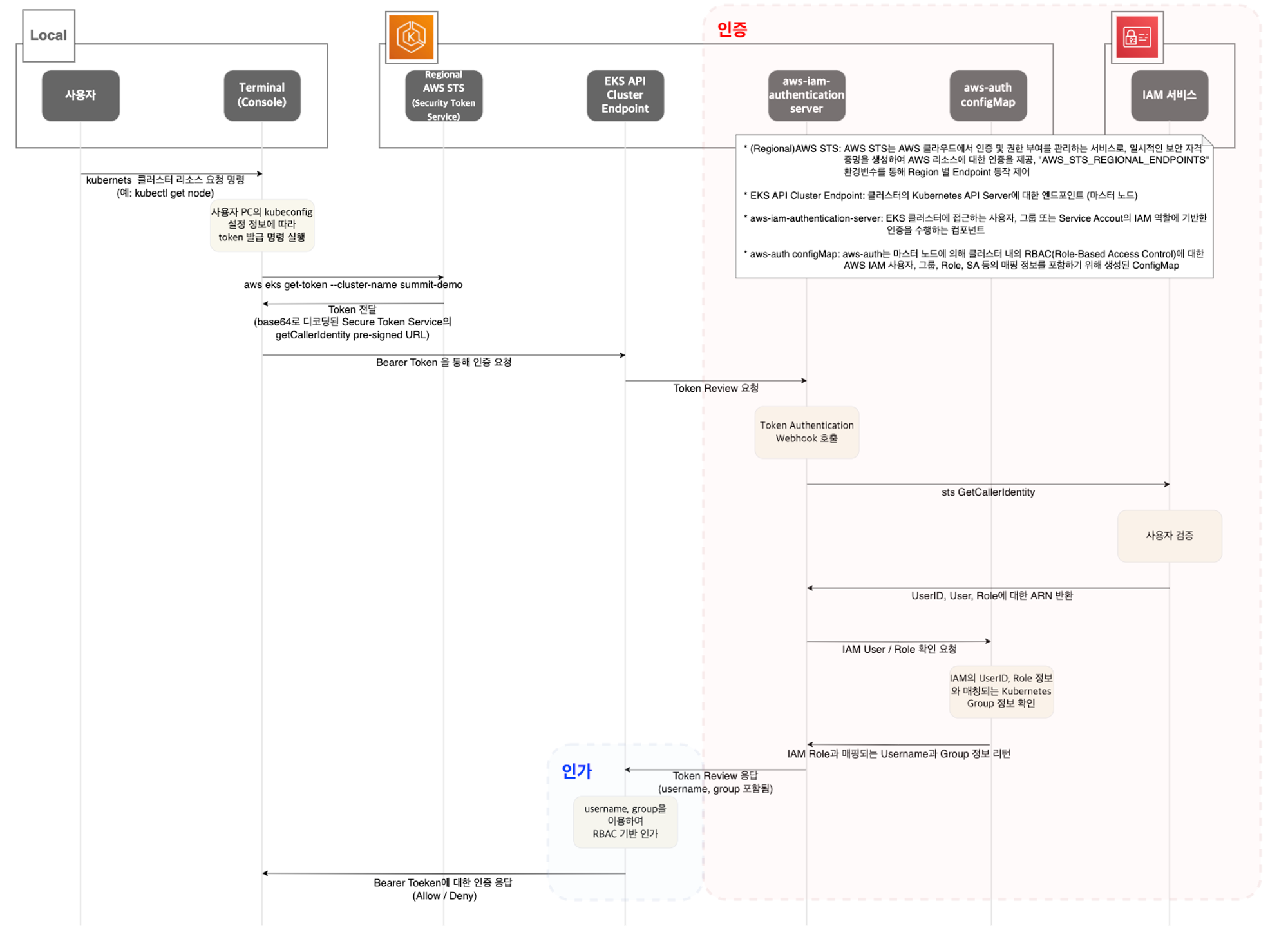# awscli 파드에서 kubeconfig 정보 생성 및 확인 >> kubeconfig 에 정보가 기존 iam user와 차이점은?