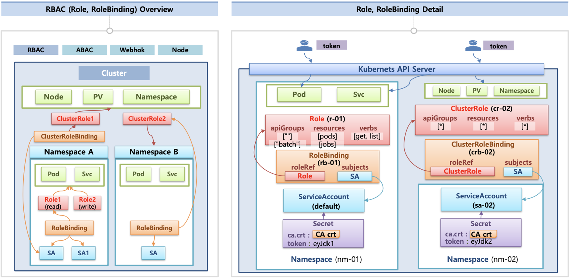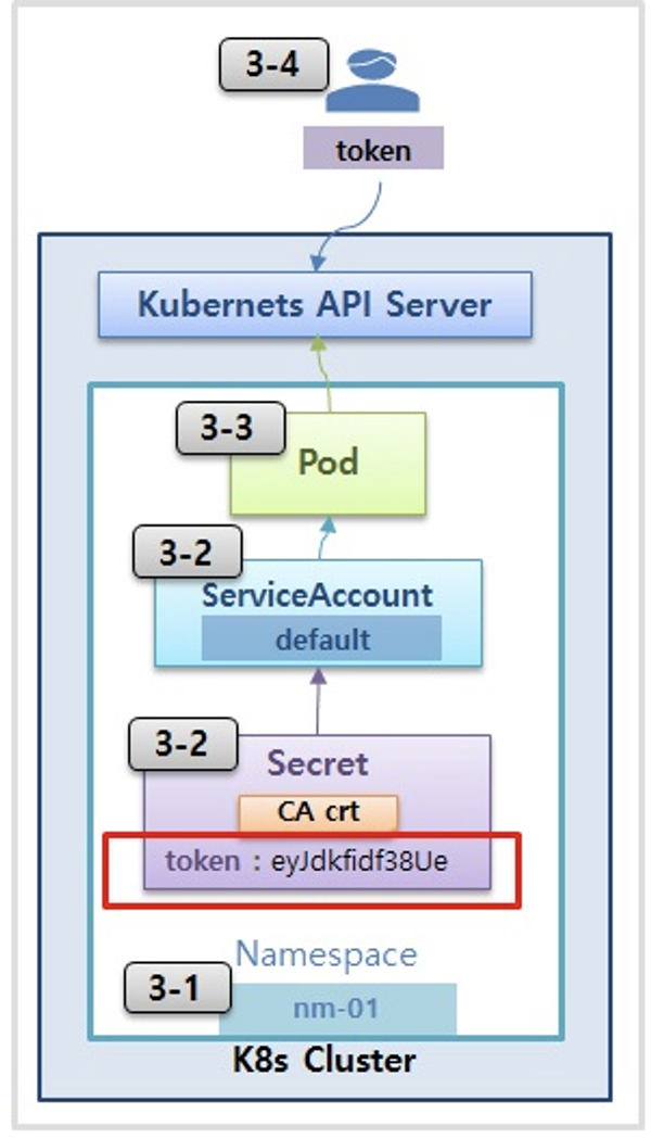 # 파드에 기본 적용되는 서비스 어카운트(토큰) 정보 확인
