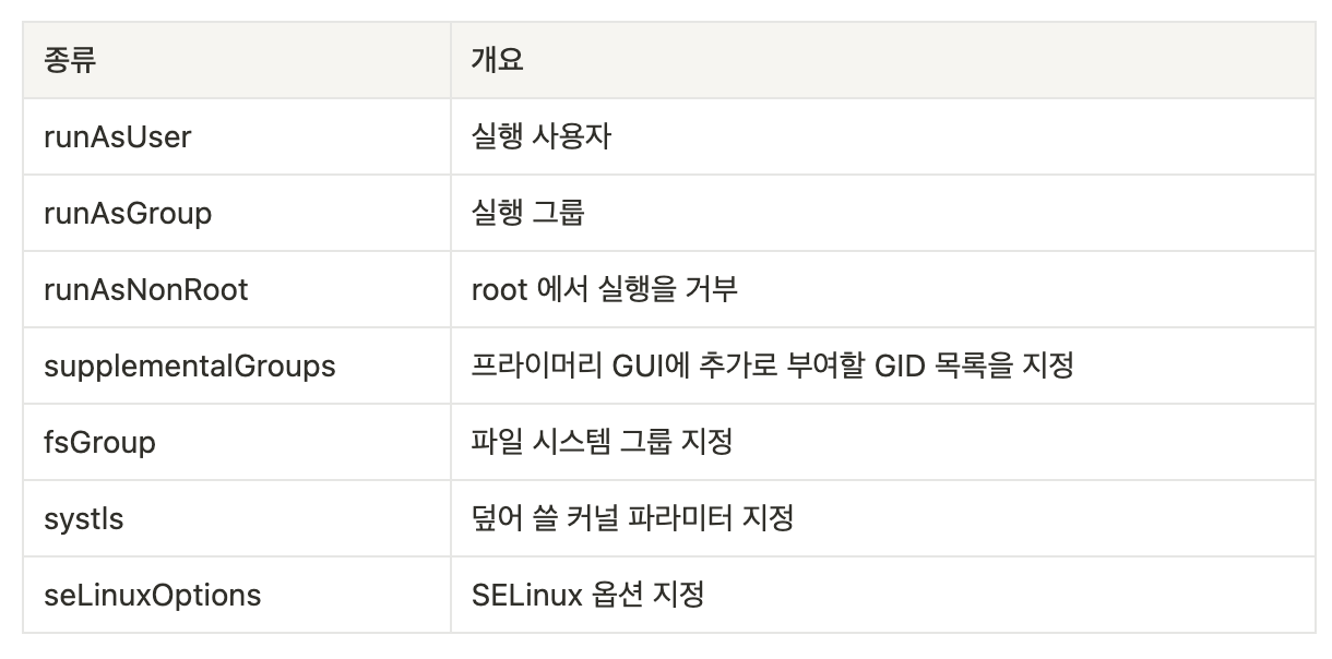 4. sysctl을 사용한 커널 파라미터 설정 : 커널 파라미터 변경 적용을 위해서는 컨테이너에서도 설정 필요, 파드 수준 적용으로 컨테이너 간에 공유됨
