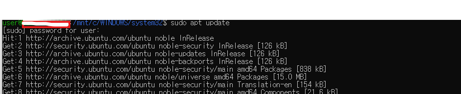 위 명령어로 우분투를 시작하면 user 이름이랑 user pw를 입력하라고 한다