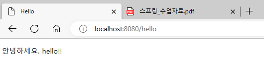 // "/hello" 도메인에 들어가면 hello 메소드를 실행시킴.