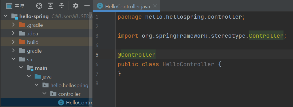 IntelliJ에서 C:\Users\USER\Study\hello-spring\hello-spring\build.gradle로 프로젝트 열기