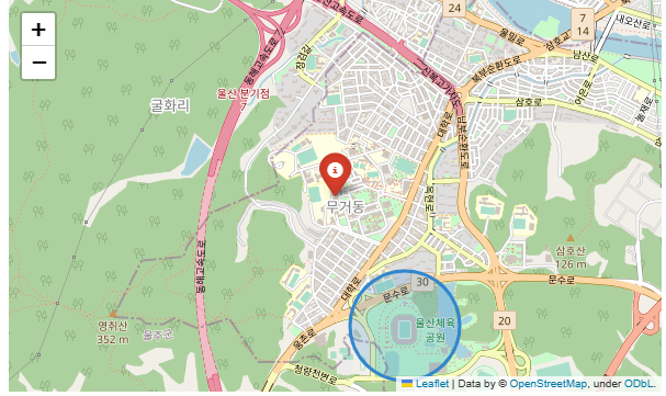 folium.CircleMarker([35.535444, 129.259542], popup='문수월드컵경기장',radius=50,color='#3186cc',fill_color='#3186cc').add_to(map_osm)