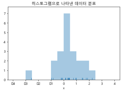plt.title("히스토그램으로 나타낸 데이터 분포")