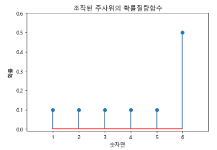 - 확률질량 함수: 유한 개의 사건이 존재하는 경우 각 단순사건에 대한 확률만 정의하는 함수 (0과 양의 정수(자연수)로 표현)