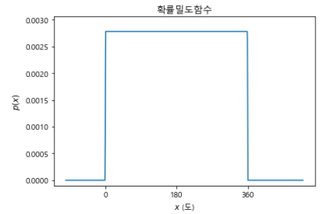 p[(0 < x) & (x <= 360)] = 1 / 360