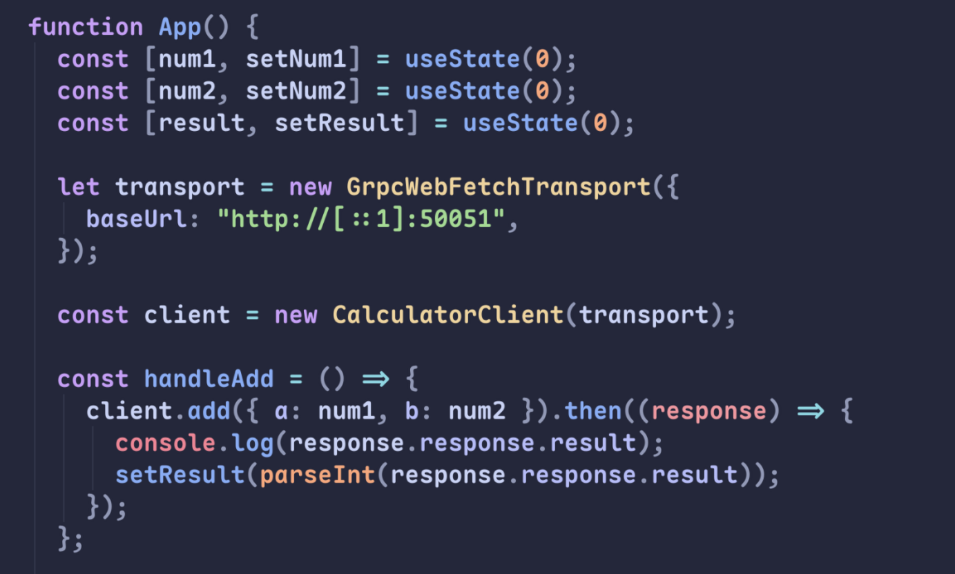 grpc transport에 연결하고, CalculatorClient를 생성하고, 거기에 add 함수를 실행시키면 원격으로 해당 함수가 실행된다.