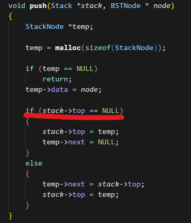 우리가 Stack 의 top 값을 초기화 해주지 않고, NULL이 있을거라 생각하고 코드를 작동하면