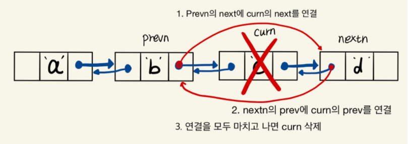 Doubly linked list는 각 노드에 자료 공간과 두 개의 포인터 공간이 있고, 각 노드의 포인터는 이전 노드와 다음 노드를 가리킨다.
