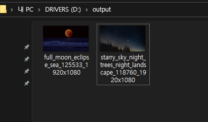 받아온 파일을 저장하는 코드로 D드라이브의 output 폴더에 저장된다.