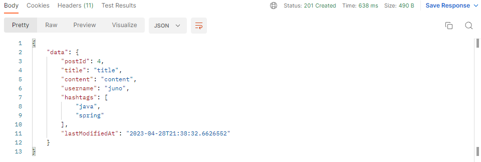 포스트 작성 요청을 받는 컨트롤러 메서드로 여러개의 파일을 처리하기 위해 List<MultipartFile> 로 받는다. 그리고 PostRequest라는 dto 또한 같이 입력으로 받는데 이 때 MultipartFile과 dto를 동시에 받기 위해 @RequestPart 어노테이션을 사용해서 동시에 받을 수 있다.