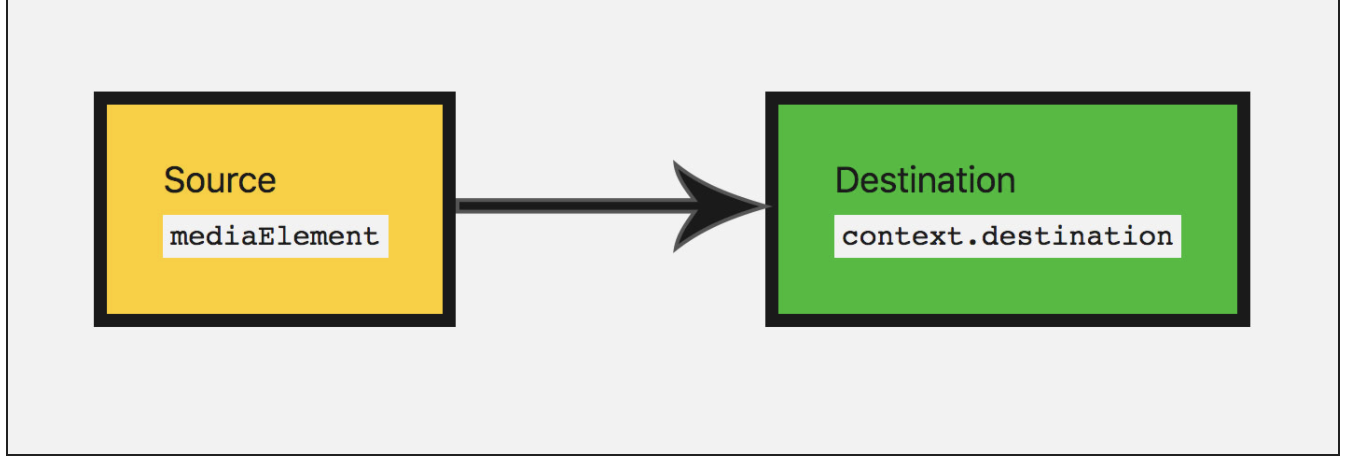 트랙을 재생하기 전에 오디오 소스/인풋 노드의 그래프를 destination과 연결해 주어야 한다. API에 우리의 오디오 엘리먼트를 통과시켜줌으로써 우리는 이미 우리의 인풋 노드를 만들어 주었다. (const track = audioContext.createMediaElementSource(audioElement);)