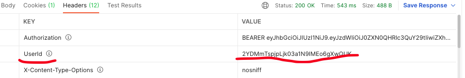 그리고 다시 포스트맨으로 요청을 보내보면 userID가 헤더에 담겨 온 것을 볼 수 있다.