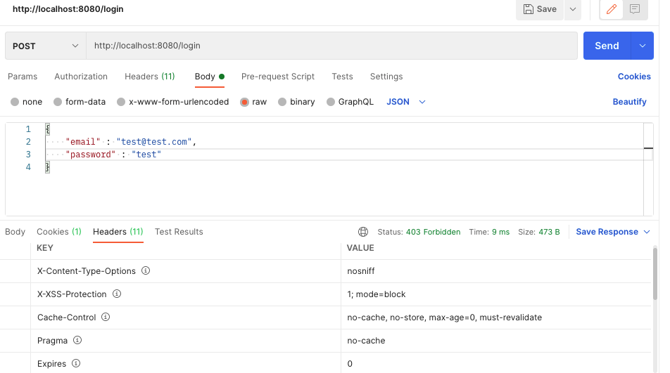 그리고 이제 POSTMAN으로 요청을 보내보자. 먼저 기존의 /loginURL
