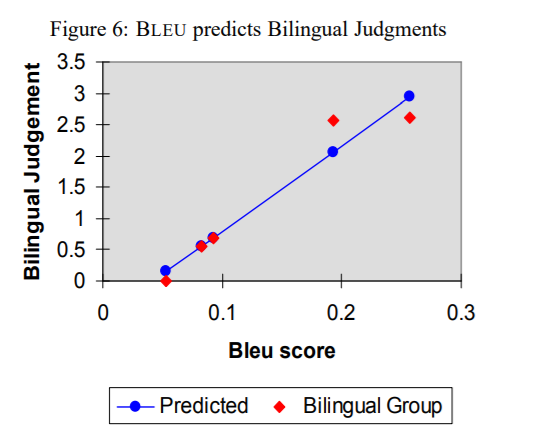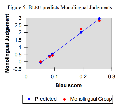 BLEU 점수가 인간 평가 점수와 매우 잘 일치한다는 것을 의미함