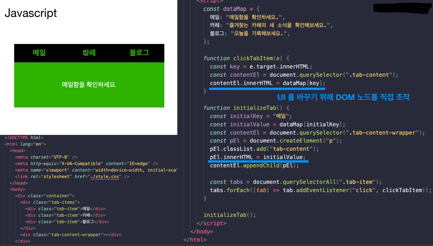 => React를 사용하면 UI 로직(DOM을 업데이트하는 로직)과