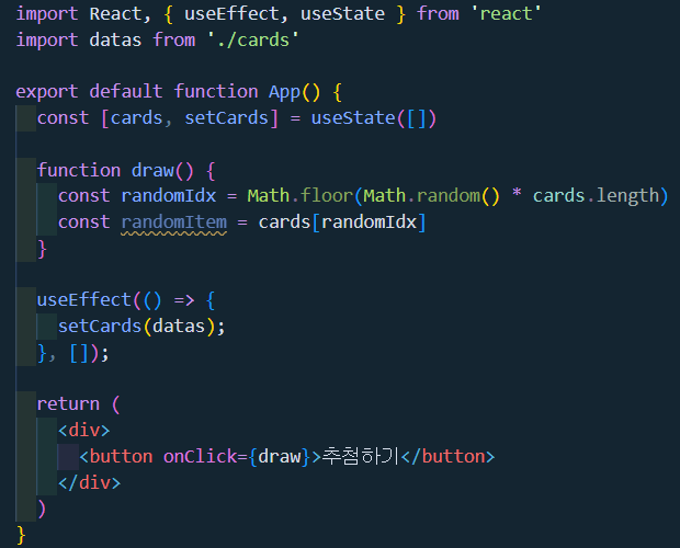 현재 pickedCards 배열에 randomItem을 더해주도록 설정