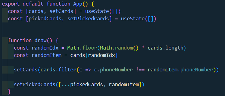 setCards(cards.filter(c => c.phoneNumber !== randomItem.phoneNumber))