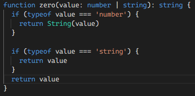 이렇게 하면 zero라는 함수의 value가 string만 반환할 수 있게 한 이 자체를 type guard라고 봐도 된다.