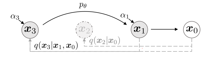 각 t에서 생성된 노이즈 첨가 샘플들은 reverse process를 학습하기 위한 조건부로 사용