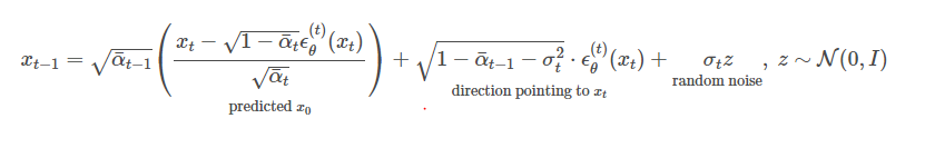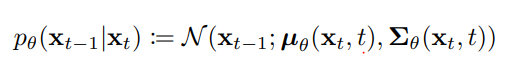 Reverse process는 forward process와 반대로 noise를 제거하는 과정