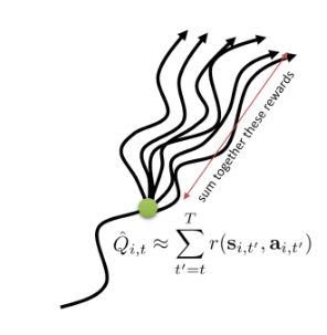 - (t′=1∑Tr(si.t′.ai.t′))=Q^i,t : reward to go