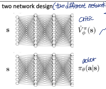 two different networks에서 V^ϕπ(s)와 πθ(a∣s) 각각 학습