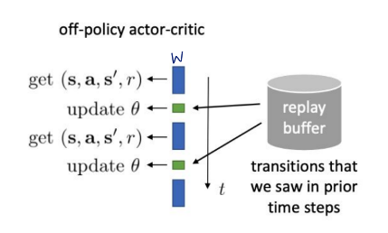 A should be sampled by current policy. 그러나 replay buffer에서 꺼낸 transition은 옛날 policy에서 sampled 된 것