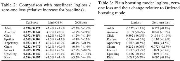 경험적 결과에 따르면 CatBoost는 leading GBDT 패키지를 능가하고 일반적인 벤치마크에서 새로운 state-of-the-art 결과를 이끌어냄