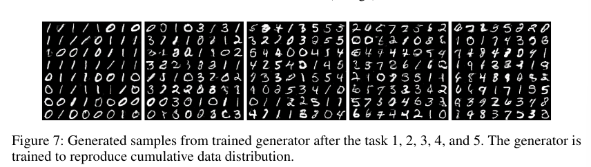 1. 새로운 generator는 현재 task의 input x와 이전 task로 replay된 input x를 전송받음