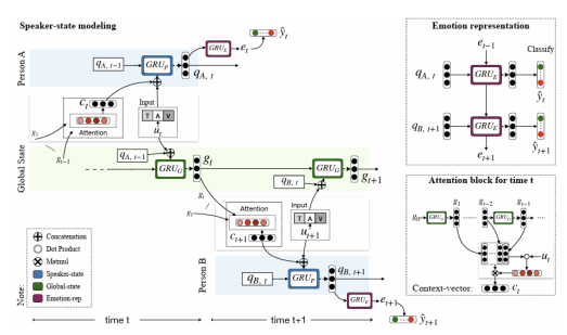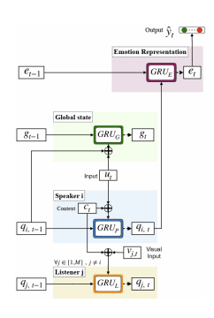 본 논문에서 제안하는 DialogueRNN은 3개의 GRU(Gated Recurrent Unit)를 사용함으로써 이러한 한계를 극복함
