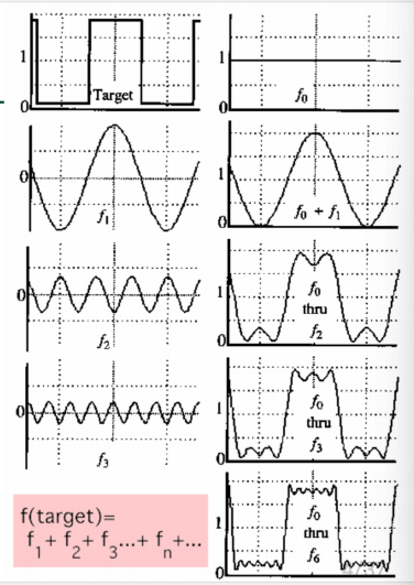 이렇게 여러 주기함수가 합쳐지면서 target의 모양을 잡아감