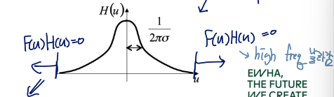 H ( u ) H(u) H ( u ) 는 F ( u ) F(u) F ( u ) 의 고주파를 attenuate함