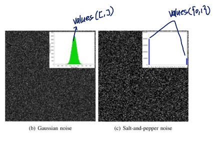 gaussian noise와 salt-and-pepper noise