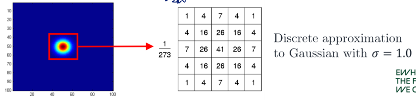 Gaussian kernel: h(i,j)=2πσ21e−21(σ2i2+j2)