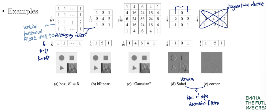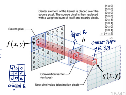 - kernel(= filter = mask)를 horizontal and vertical direction으로 flip