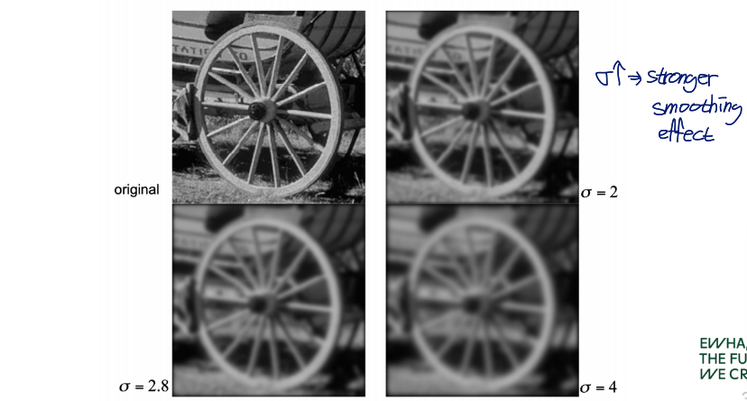 가우시안 필터는 σ의 값이 커질수록 smoothing effect가 강해짐
