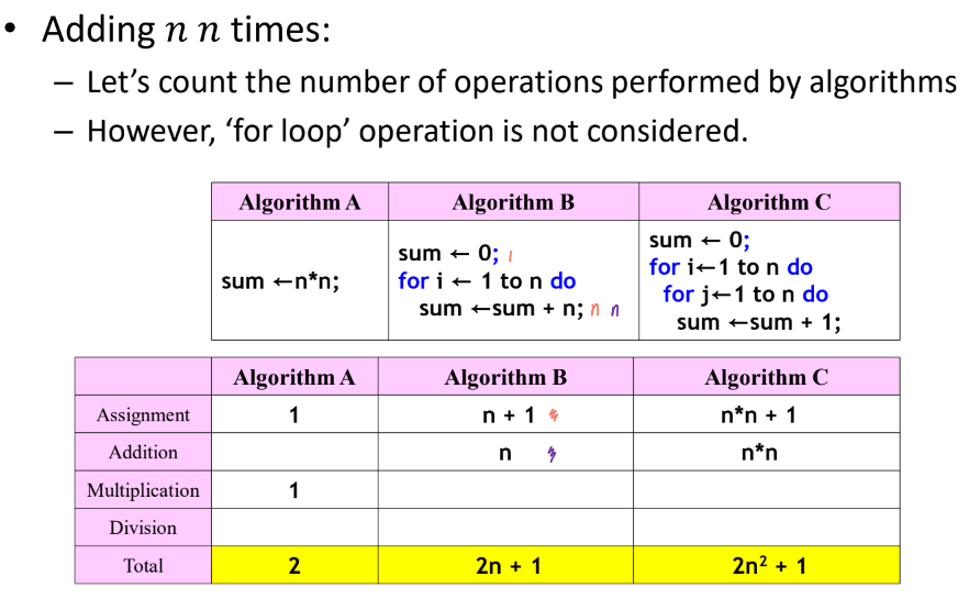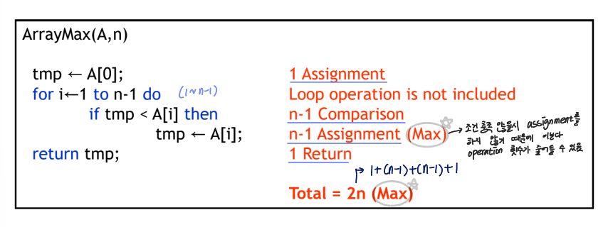 - 일반적으로 the number of operations : a fuction of n(n= the number of input data)