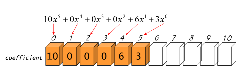 polynomial a = {5, {3,6,0,0,0,10}};