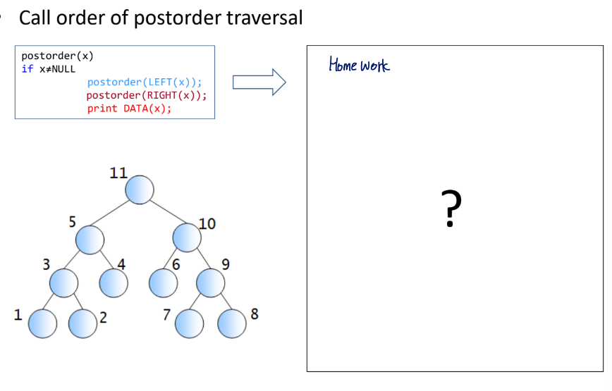 subtree 단위로 올라가며 데이터 출력, left-most node will be printed out first