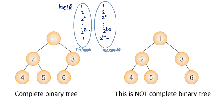 # of nodes: (i = 0부터 k-1까지)∑2^i = 2^k - 1