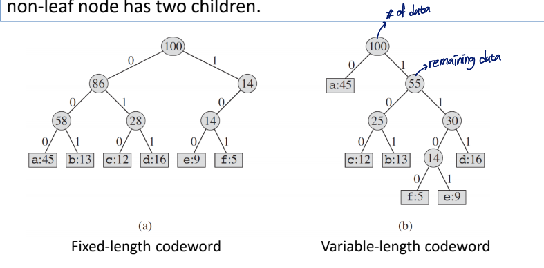 Optimal codeword is represented by a full binary tree, in which every non-leaf node has two children