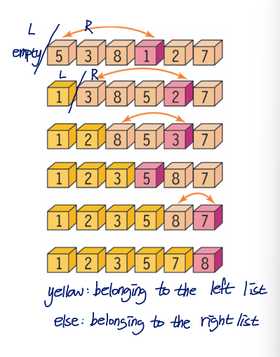 Insert sort ~ Bubble sort : not using devide and conquer (=간단한 sorting 방법)