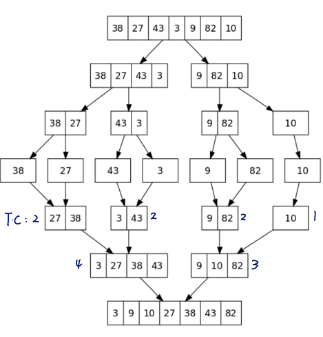 → best and worst case : O(nlog₂n) and Ω(nlog₂n) => θ(nlog₂n)