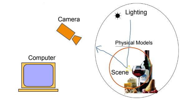 we need to understand the relation between the lighting, surface reflectance and medium and the image of the scene